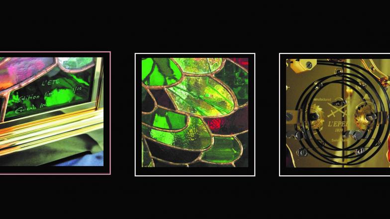 The Qatar By Eduard Indermaur is an exclusive so-lid brass clock in an extremely luxurious unique edition. The clock is hand-made in L’Epée’s manufacture and decorated by the Swiss artist glass-maker Eduard Indermaur.